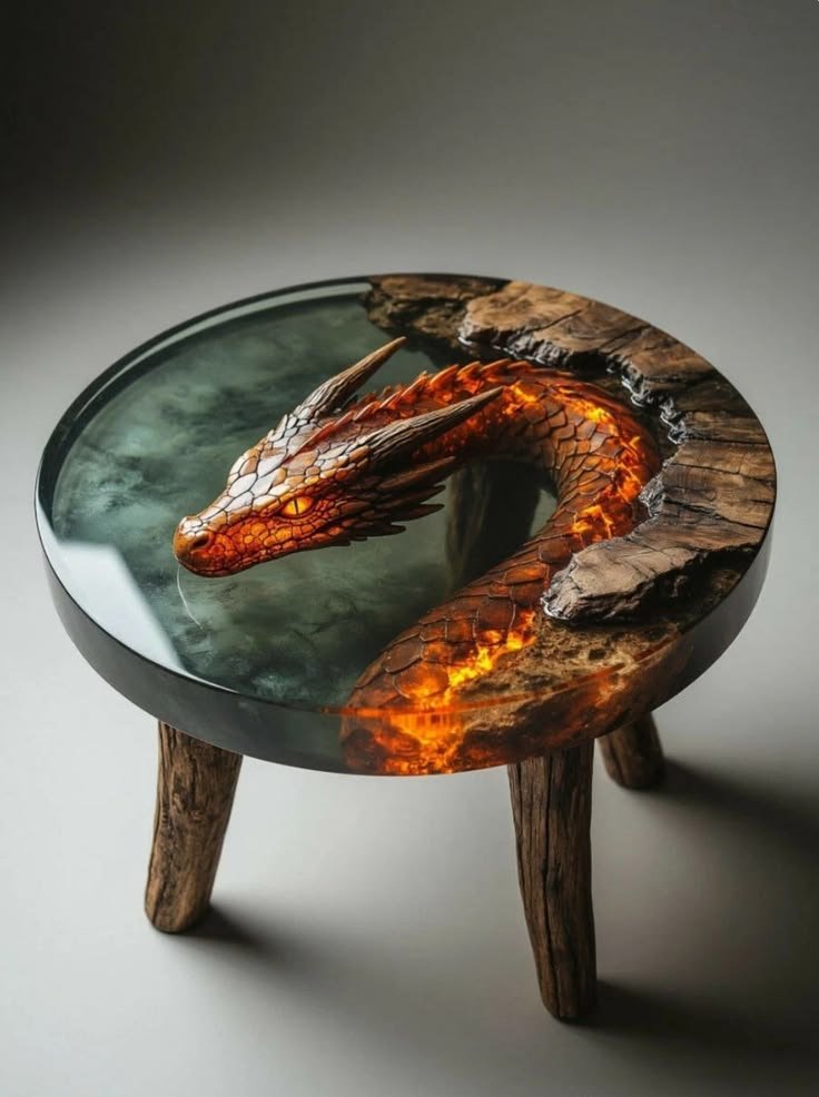طاولة قهوة التنين من الخشب الطبيعى والسيلكون