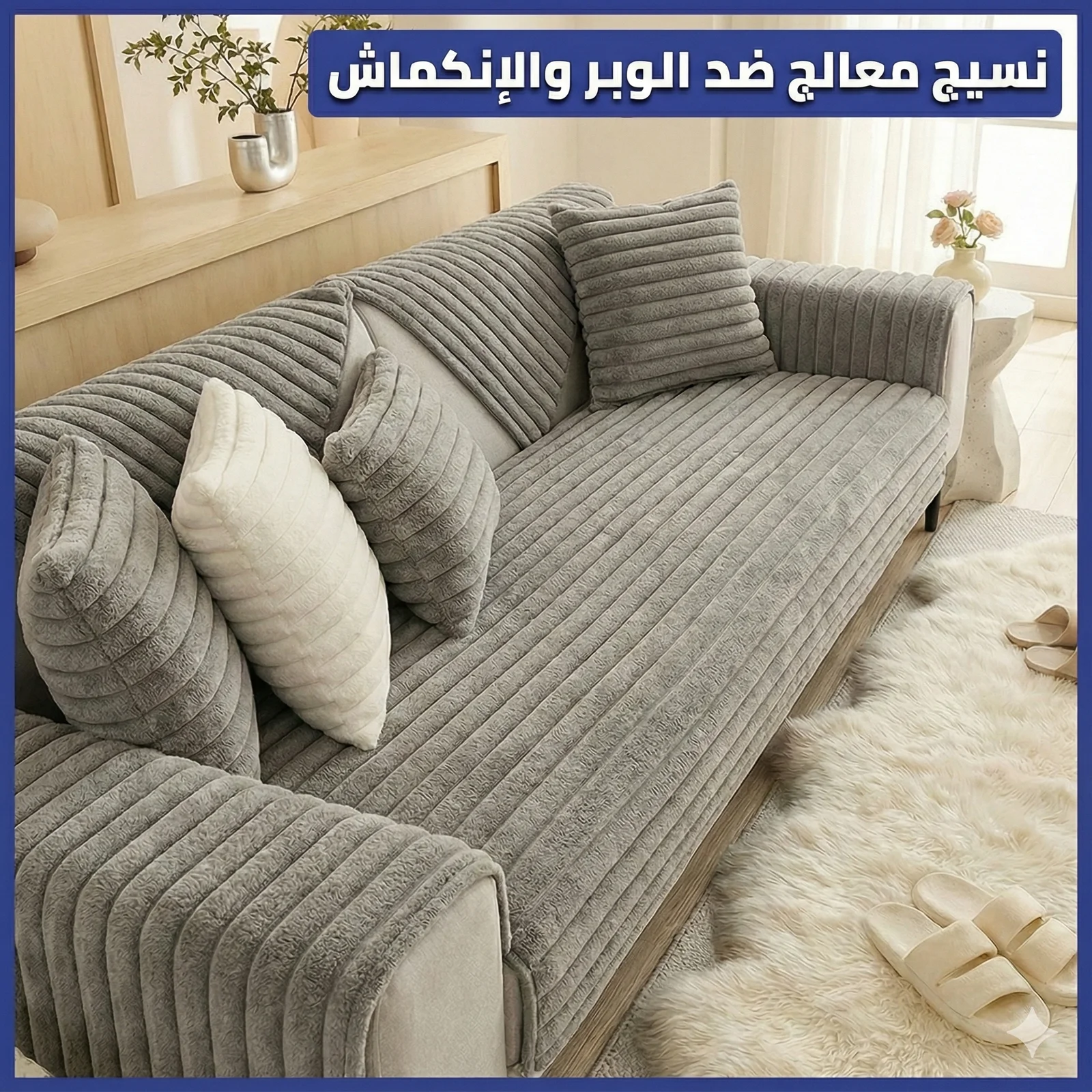 طقم بياضات ركنة، الخامة فرو أسباني، بظهر حبيبات سيليكون غير قابل للإنزلاق