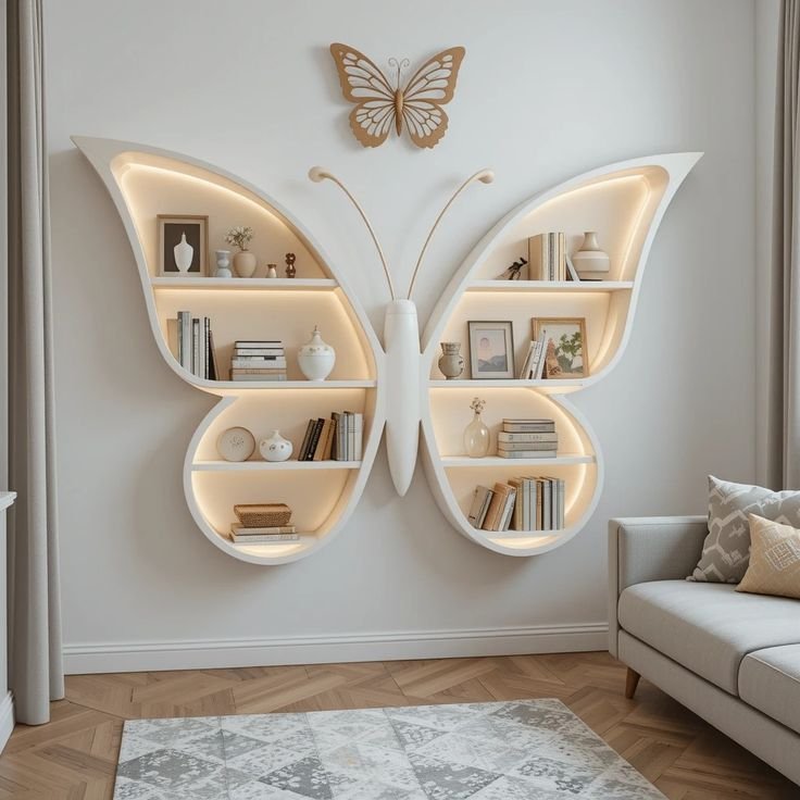 مكتبة حائط شكل فراشة من الفوم - مضيئة قابلة للفك والتركيب